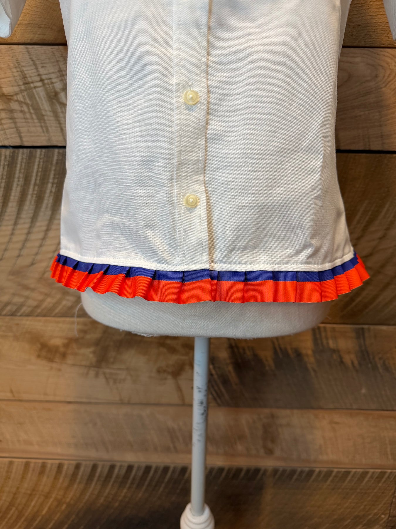 Get your cheer on and ESPN ready with our GAME DAY Ellie! Ellie, Ellie, bo-bellie, banana fana fo-fellie, me my mo-mellie...ELLIE! When the sun is hot, the humidity is up and the temperature is on the rise, keep, and more importantly look, cool in this darling ruffled SS Oxford.