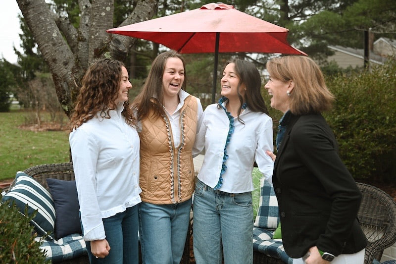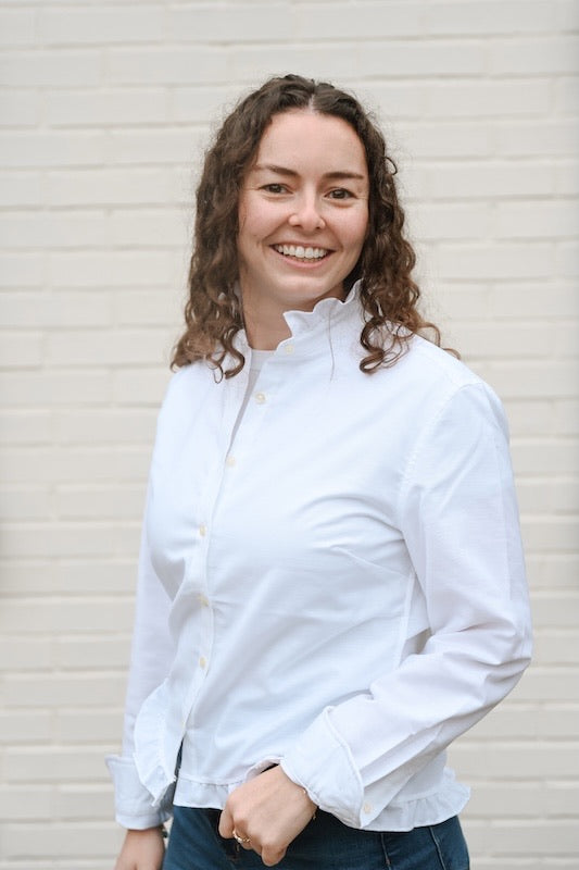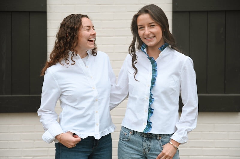 Our new MTM Oxford is sure to be your new go to blouse! Just like the iconic newsroom character MTM, this shirt is all business with just a bit of sass and flair. We have shortened our classic Oxford and ruffled the hem and collar with more Oxford cloth to create a modern silhouette. She's ready for a day at the office and then a night on the town!