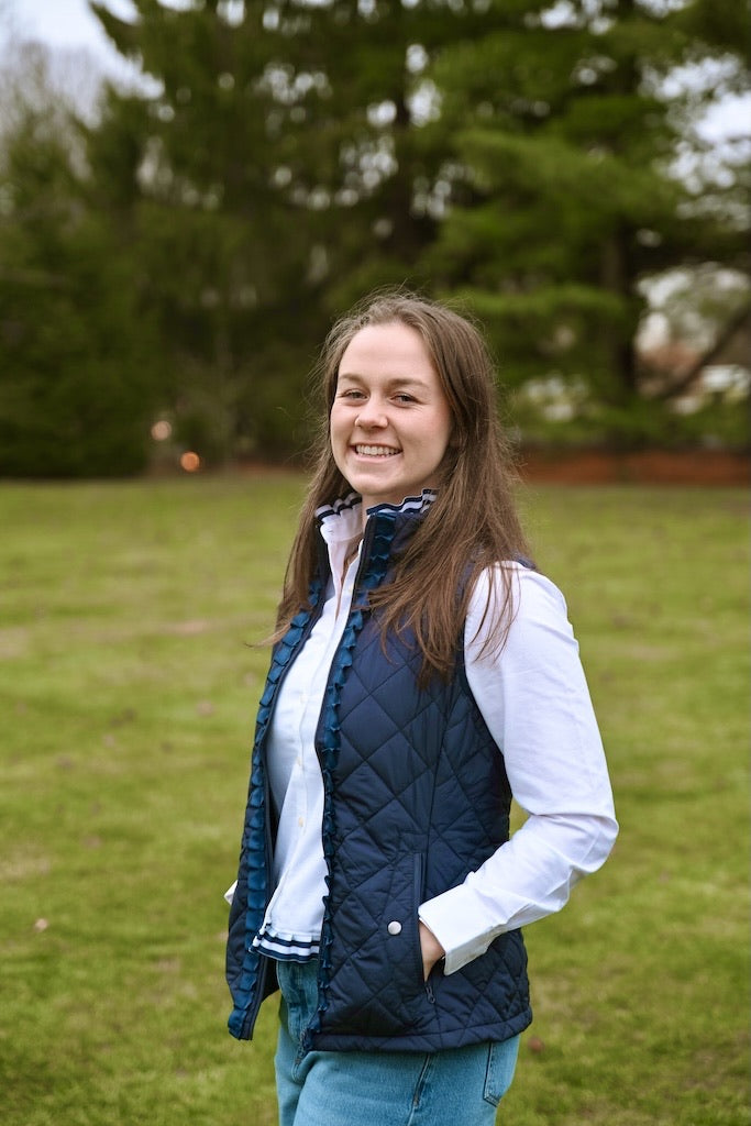 Maggie May Ruffled Ribbon Puffer Vest Navy w Navy (PF15)