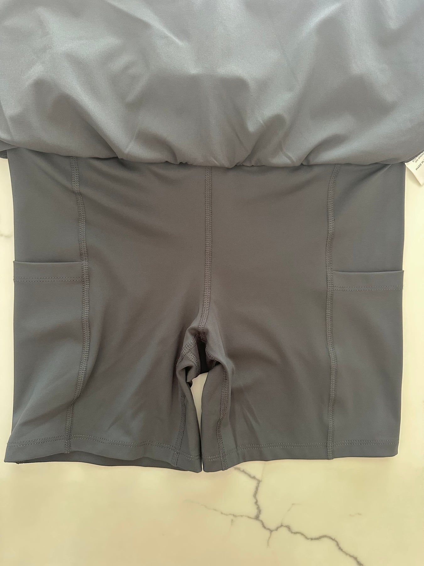 Skort is poly/spandex. Compression short has two pockets. Machine washable but NO FABRIC SOFTENER! She's soft enough already!