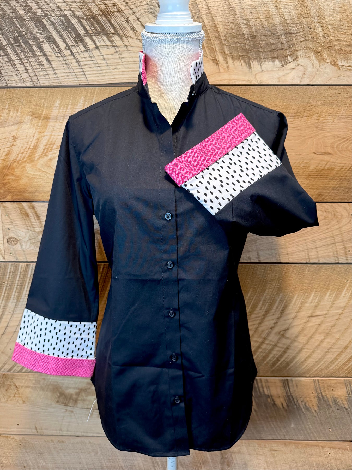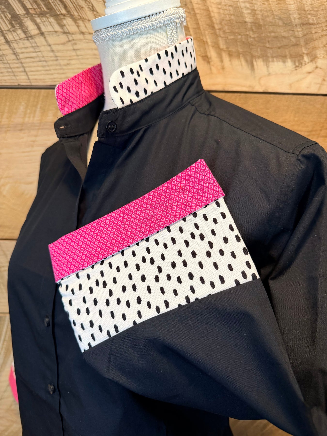 Beth Bell Sleeve - Black w Rain Dots & Pink Mini Trellis (LB58)